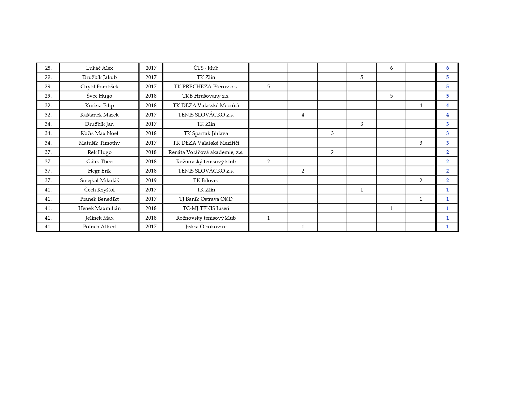 Hráče už nyní čeká jen závěrečný turnaj Masters, který se bude konat v neděli 29.3. v Tenis Clubu Bajda Kroměříž. Všichni příznivci kvalitního tenisu jsou srdečně zváni!